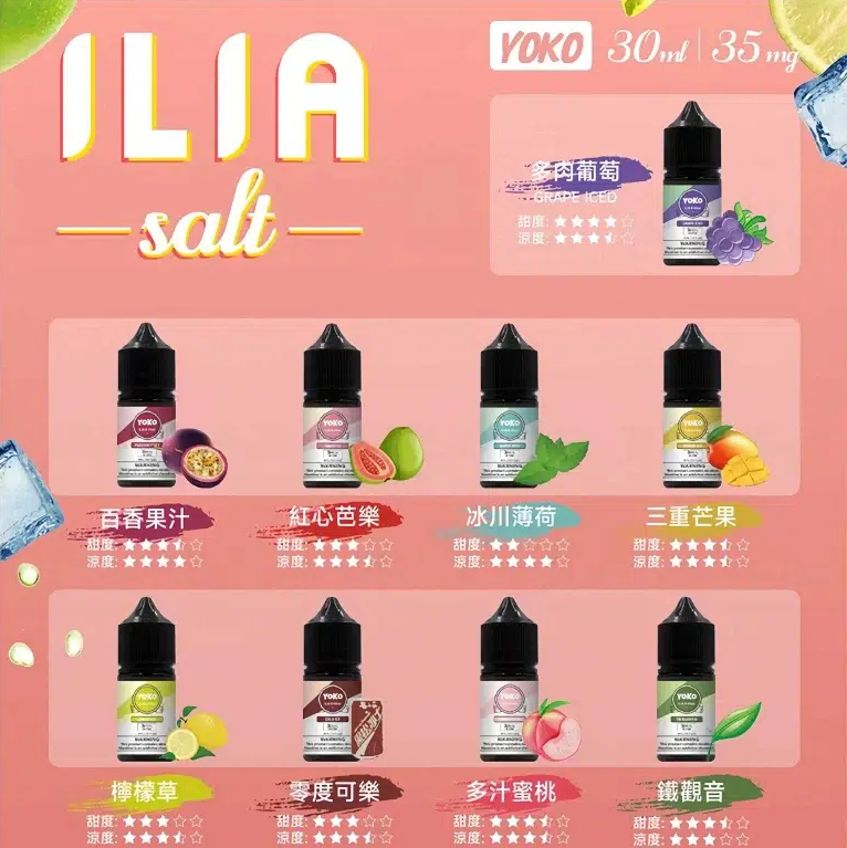 ILIA(哩亞) 是台灣電子煙市場中受歡迎的品牌,提供多樣產品,包括一次性(拋棄式)電子煙、換彈式主機、煙彈,以及注油型煙油(E-liquid)等系列產品。