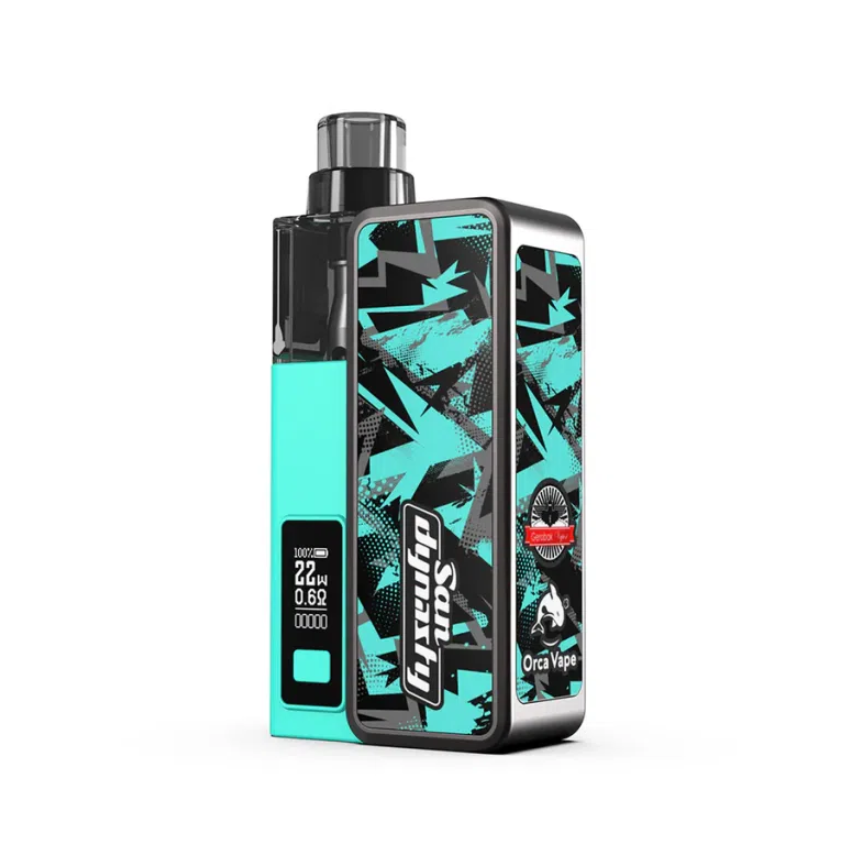 San Dynasty 是 Orca Vape 推出的可替換電池 Pod 系統主機,支援 14500 規格鋰電池(1000mAh 容量),電池可自行更換,延長使用壽命與便利性。主機最大輸出 22W,搭載 0.6Ω 線圈,霧化穩定、口感濃郁,適合 Nic Salts 或高 VG 煙油使用。