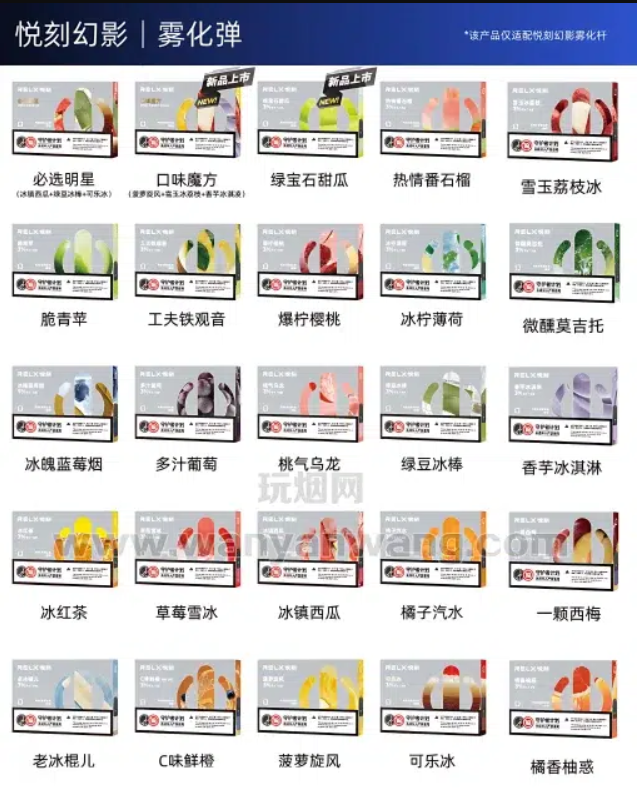 悅刻五代煙彈提供了極其豐富的口味選擇,涵蓋了經典、飲品、水果和薄荷等類別。