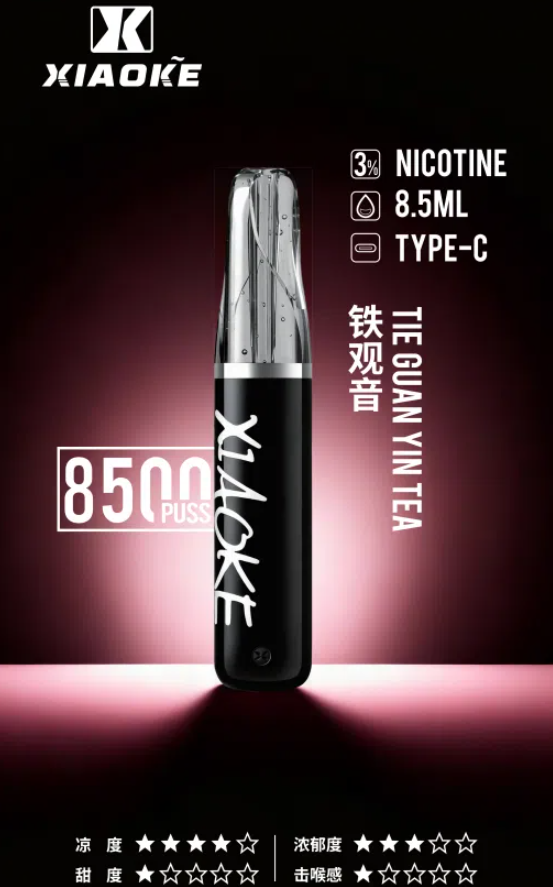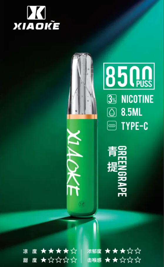 XIAOKE 一次性電子煙主打 約 8500 口大容量使用次數,相比一般 3000~5000 口的一次性電子煙,續航更長,減少頻繁更換設備的麻煩。